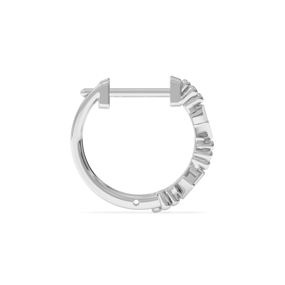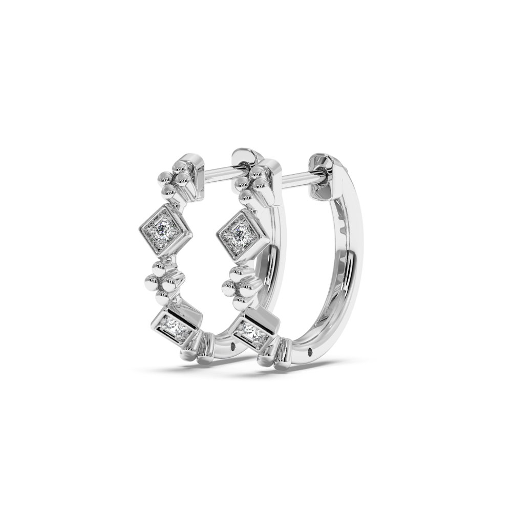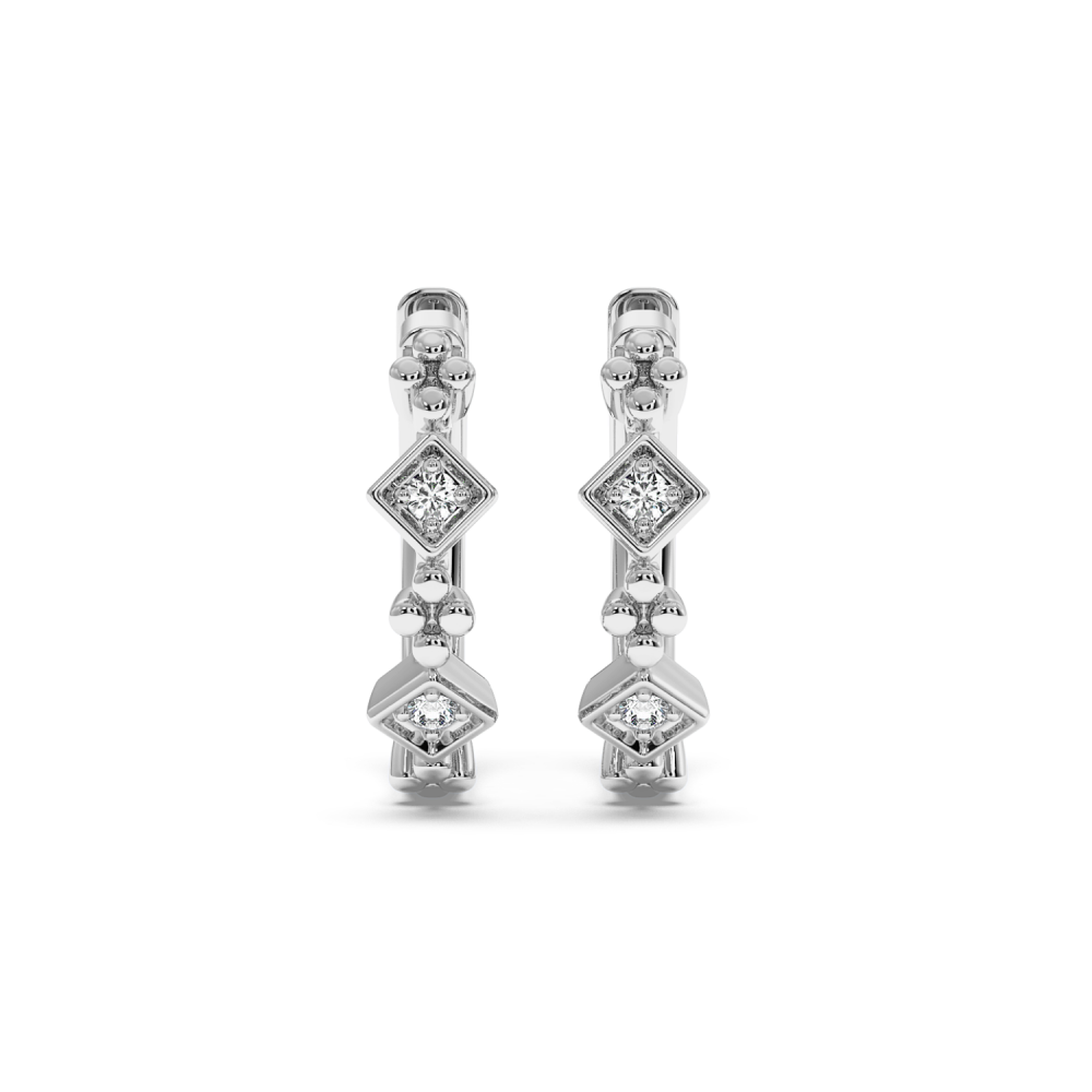 14 K white gold earrings with 0.04 ct diamonds. The weight of the earrings is 1.7 grams. The diameter of the earrings is 1.2 cm. Earrings can also be made to order in 18K yellow or rose gold. We can modify the design according to your budget.