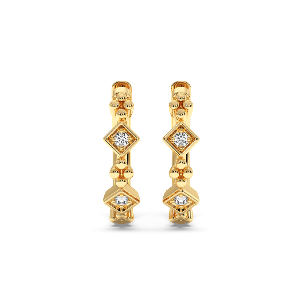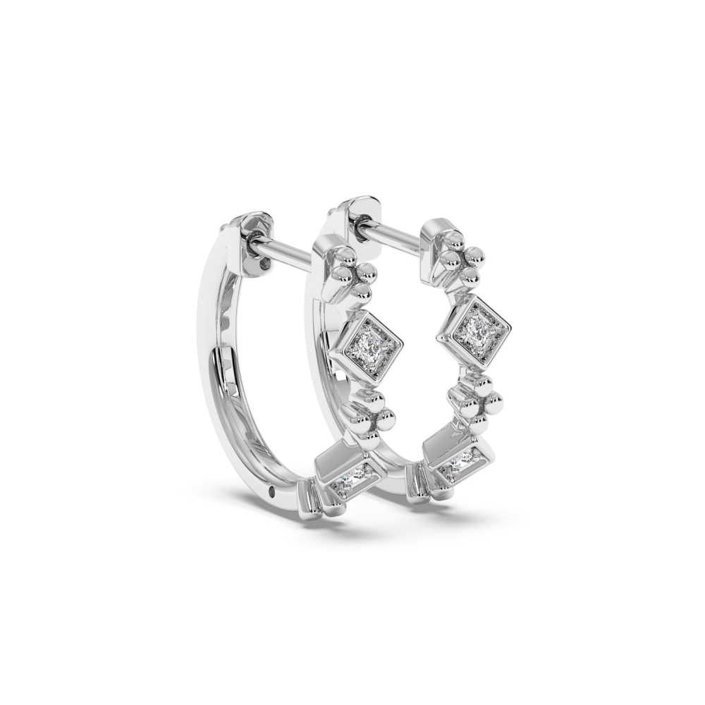 14 K white gold earrings with 0.04 ct diamonds. The weight of the earrings is 1.7 grams. The diameter of the earrings is 1.2 cm. Earrings can also be made to order in 18K yellow or rose gold. We can modify the design according to your budget.