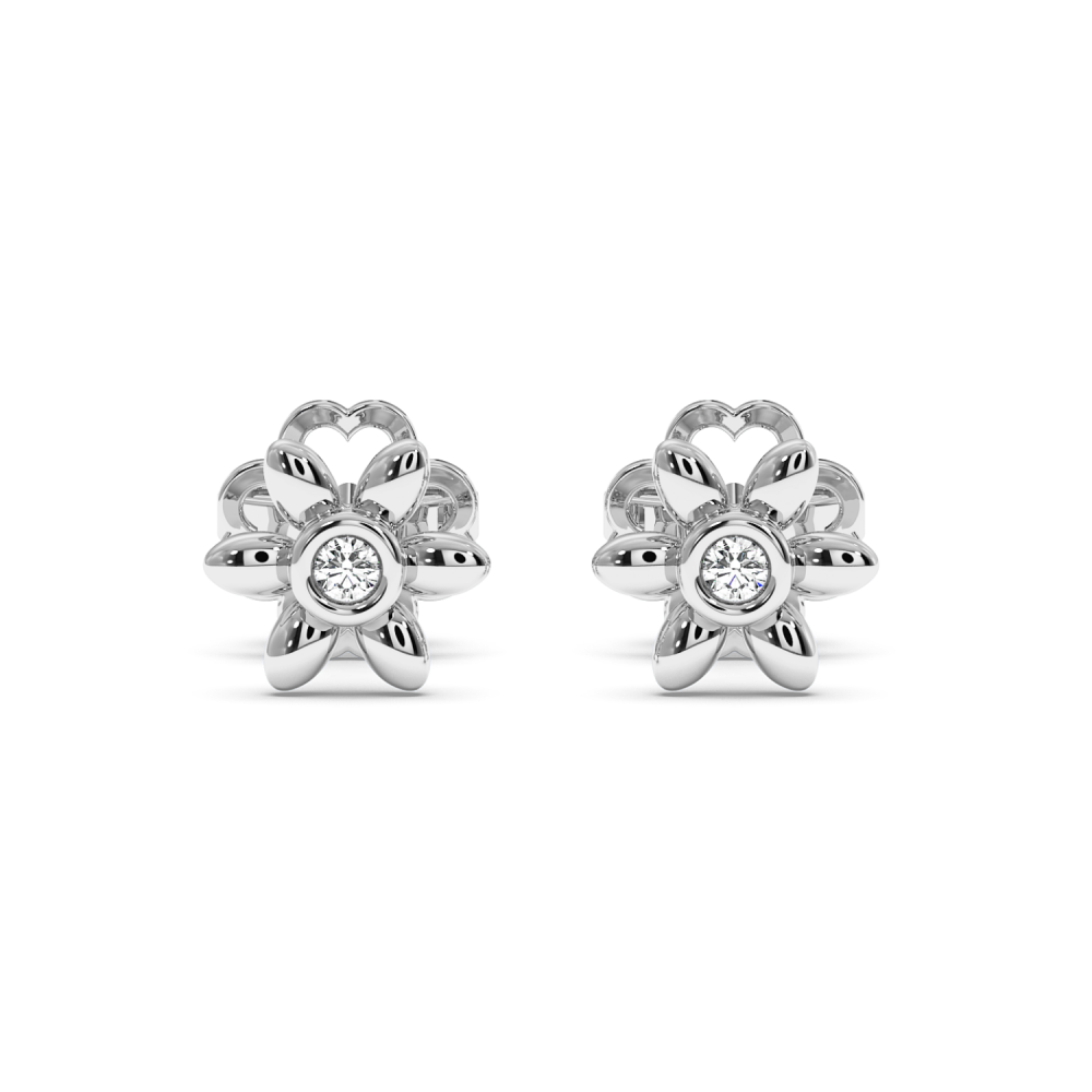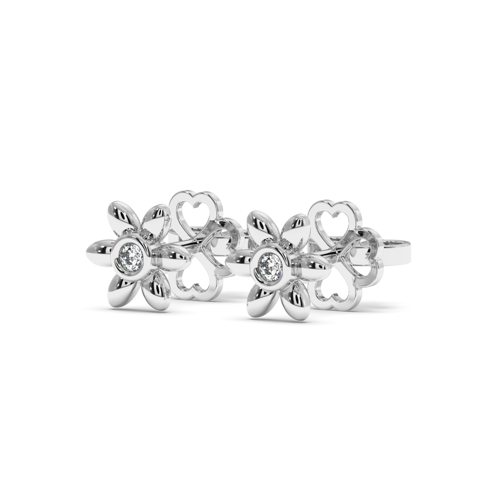 14 K white gold earrings with 0.04 ct diamonds. The weight of the earrings is 1.9 grams. The diameter of the earrings is 6 mm. Earrings can also be made to order in 18K, yellow or rose gold. We can modify the design according to your budget