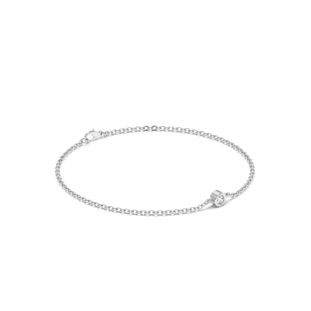 14 k white gold bracelet with 0.05 ct diamonds. The weight of the bracelet is approximately 2 grams. Bracelet length is 13 cm