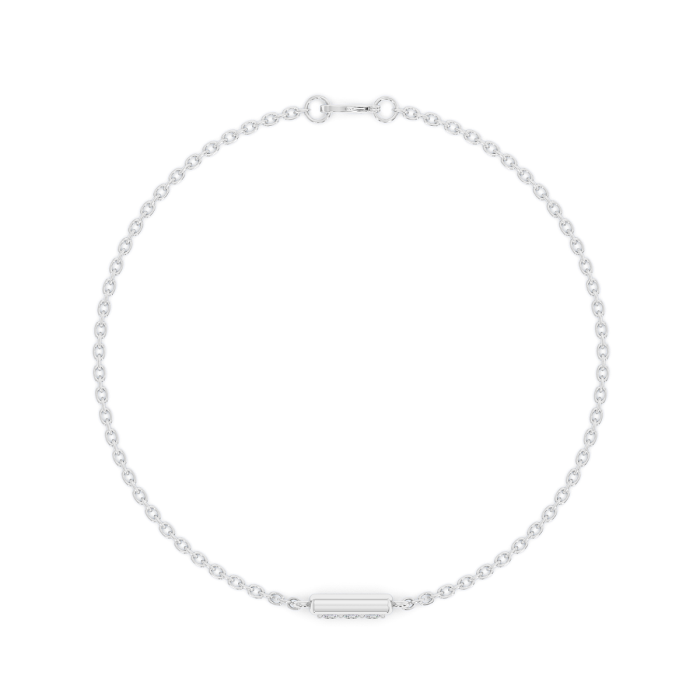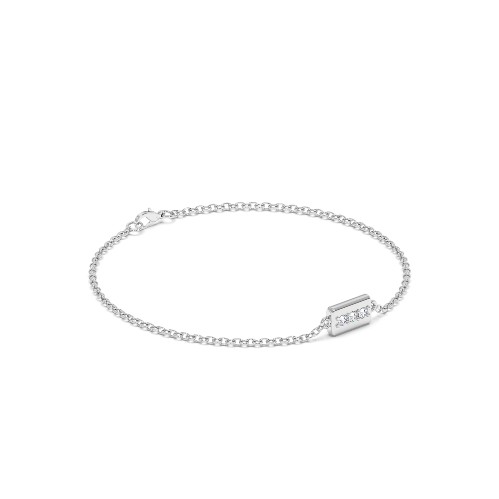 14 k white gold bracelet with 0.05 ct diamonds. The weight of the bracelet is approximately 2 grams. Bracelet length is 13 cm