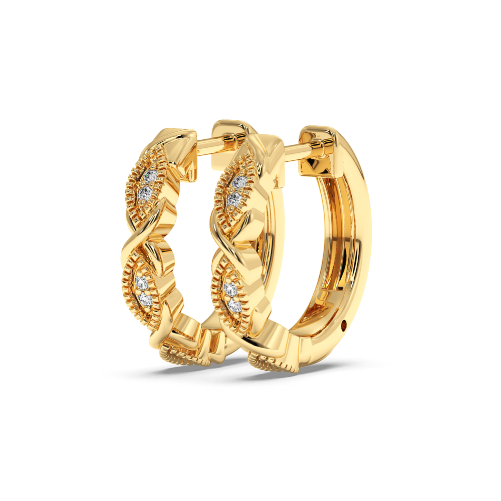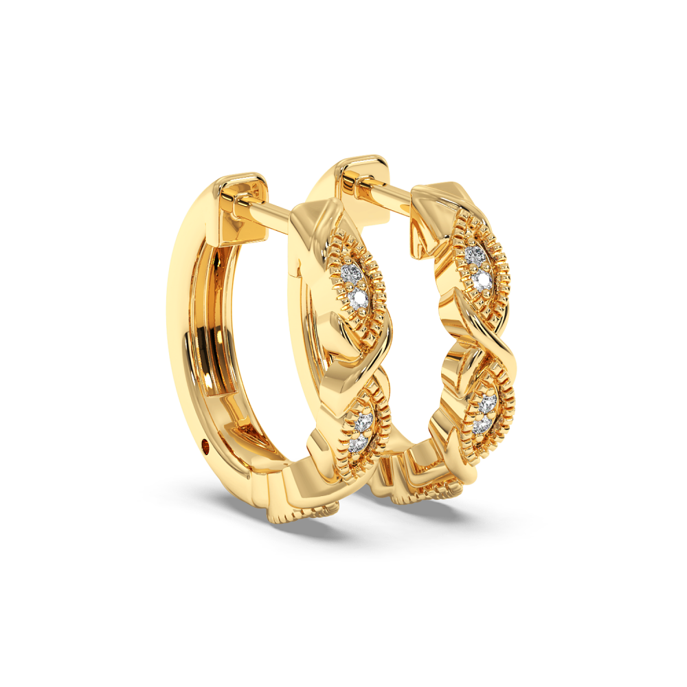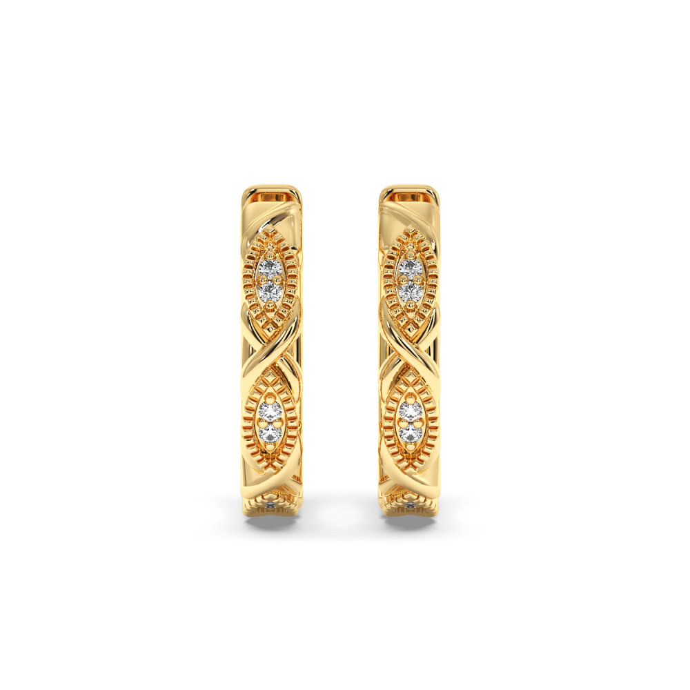 14 K gold earrings with 0.05ct diamonds. The earrings weigh approximately 3.70 grams. Earrings can also be made to order in 18K, yellow or rose gold. We can modify the design according to your budget. We can choose the characteristics of the diamonds (cut, color, clarity, carat) to create the...