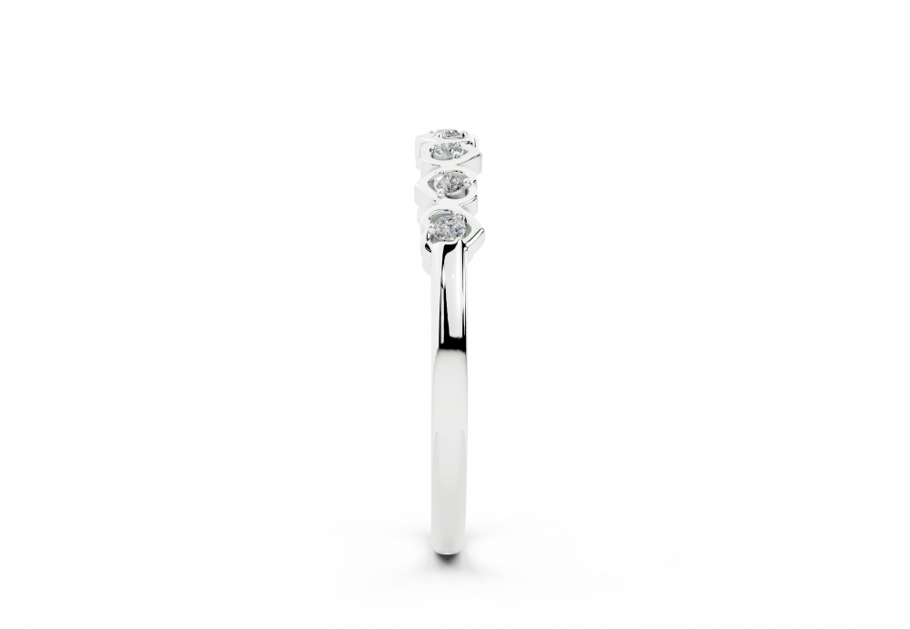 14K white gold ring with round diamonds of 0.05ct. Ring weight is 1.52 grams. We can modify the design according to your budget. We can choose the characteristics of the diamonds (cut, color, clarity, carat) to create the perfect diamond ring. Go to "FEATURES " for more details about this...