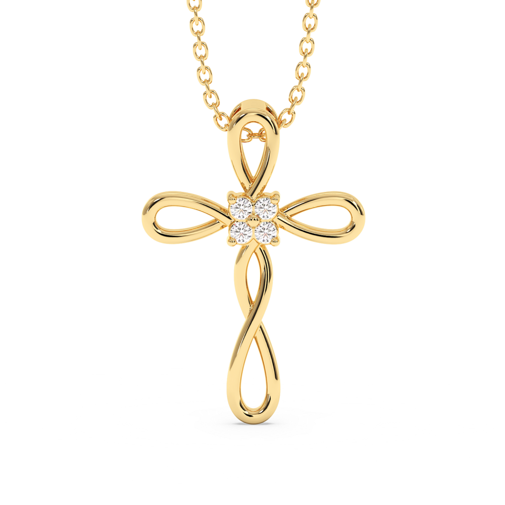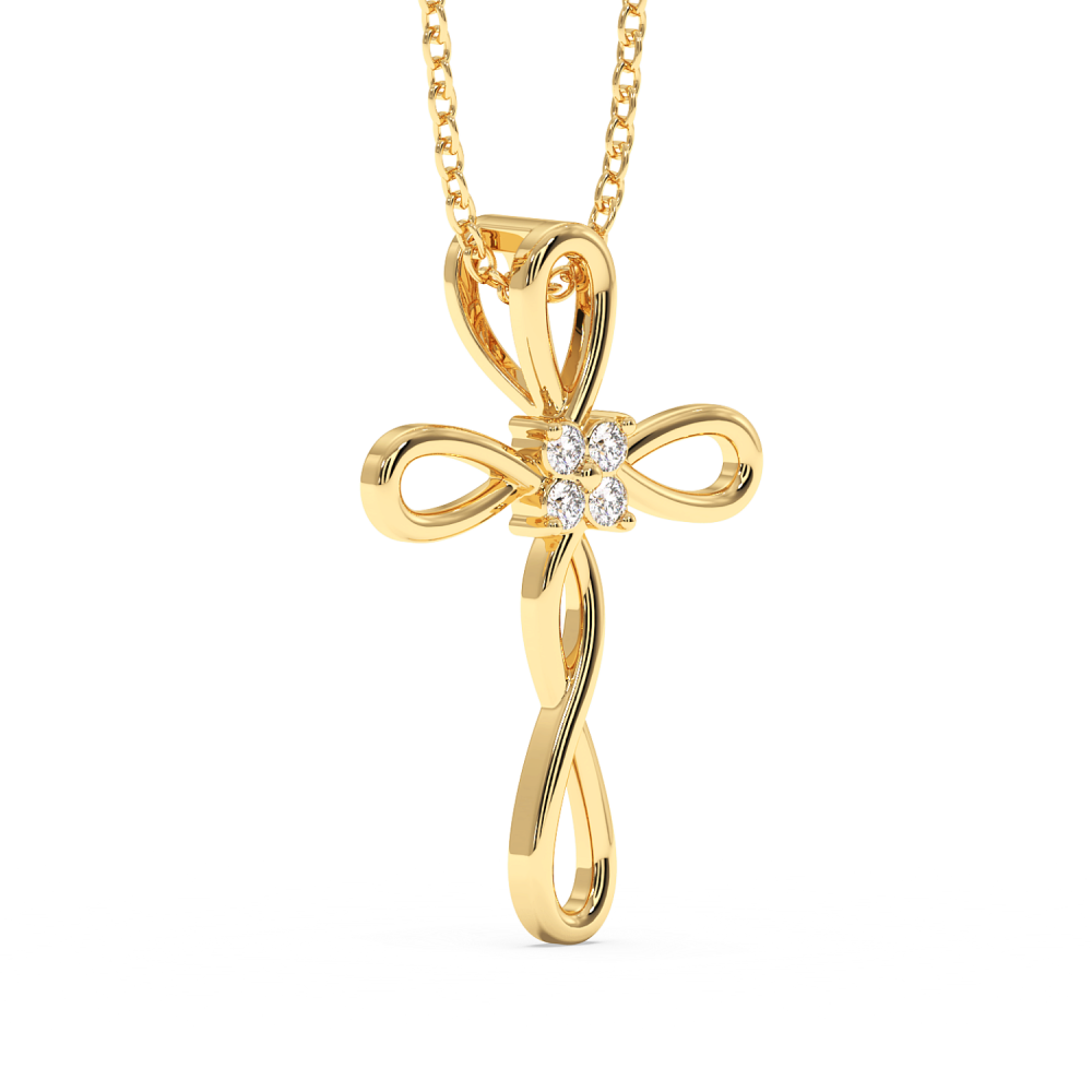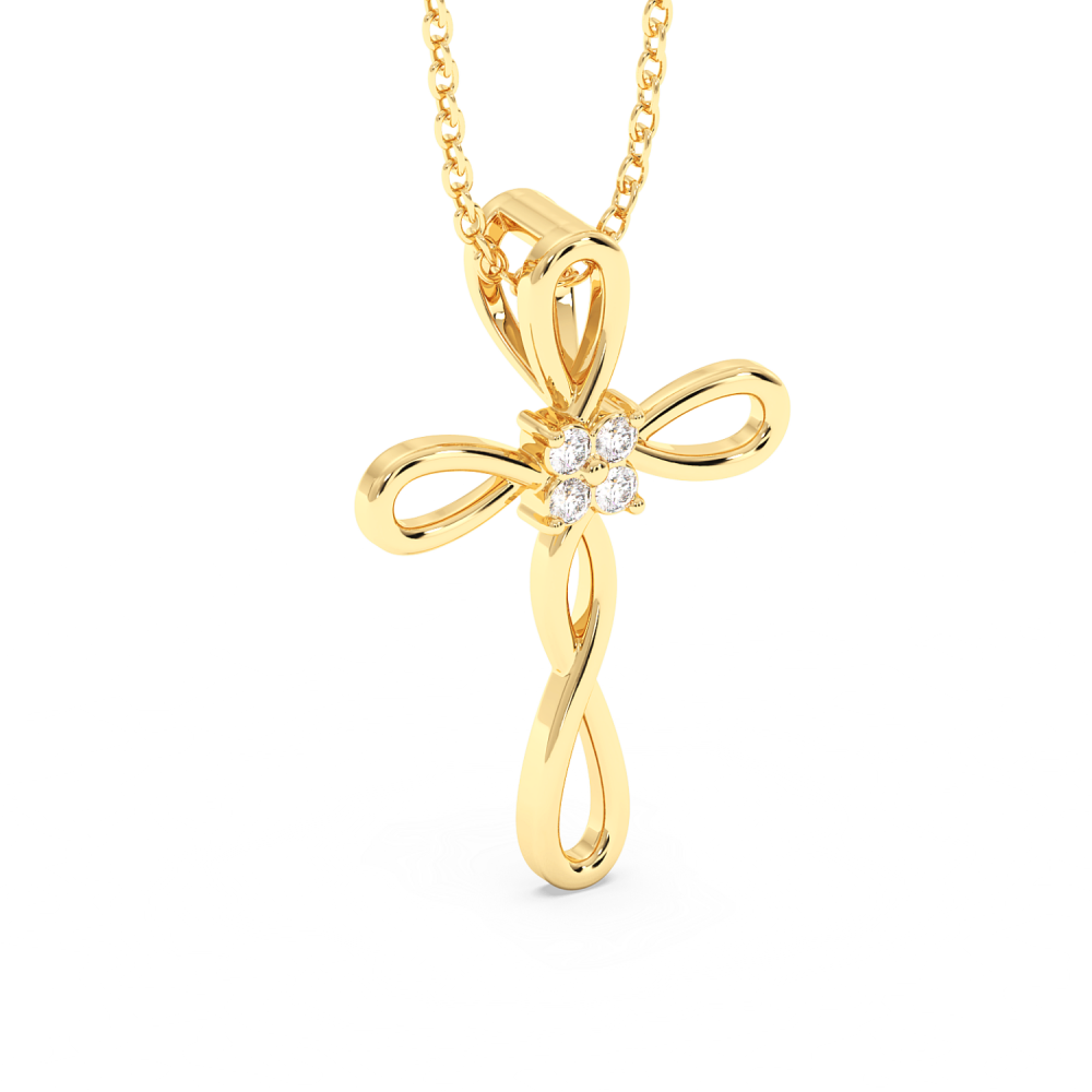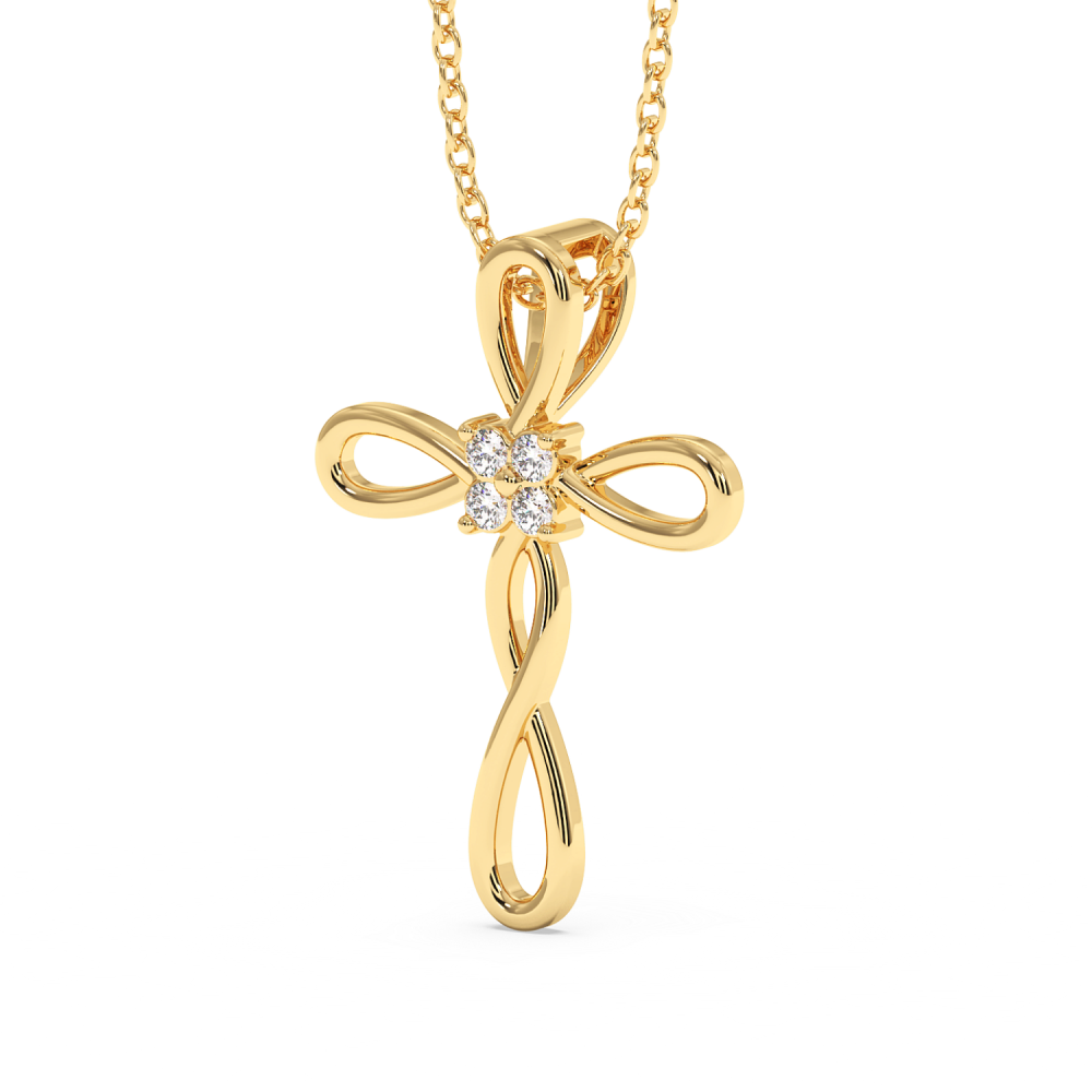 Cross pendant in 14 K gold with 0.06ct diamonds. The weight of the cross is approximately 1.20 grams. Go to "SPECIFICATIONS" for more details about this product.