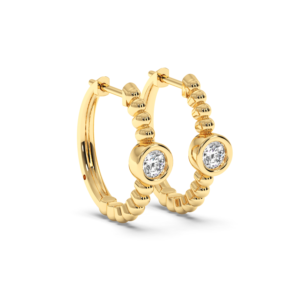 14 K white gold earrings with 0.08 ct diamonds. The weight of the earrings is 3 grams. The diameter of the earrings is 1.6 cm. Earrings can also be made to order in 18K yellow or rose gold. We can modify the design according to your budget