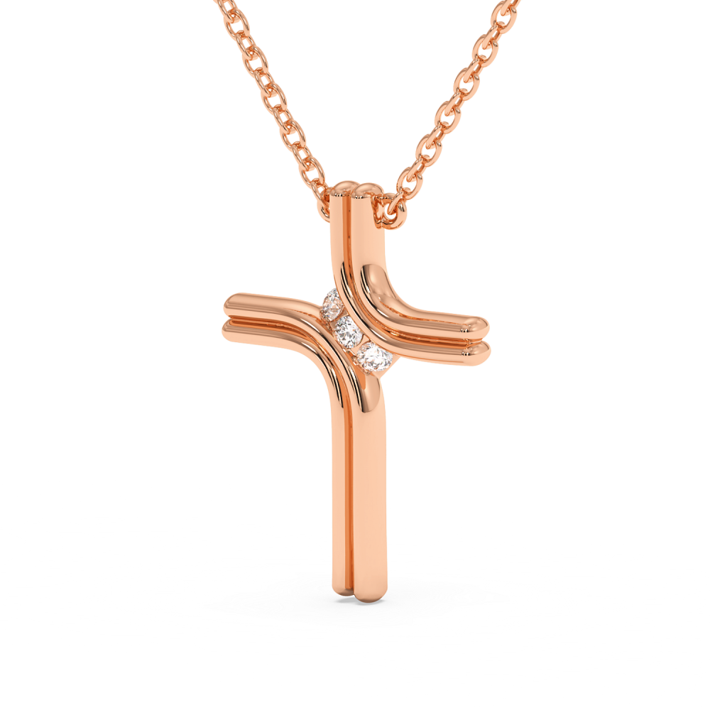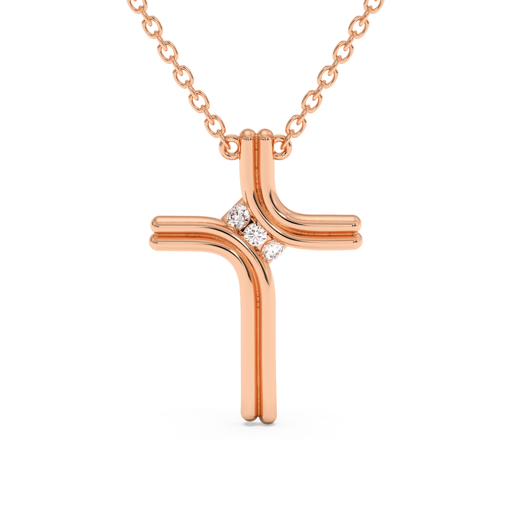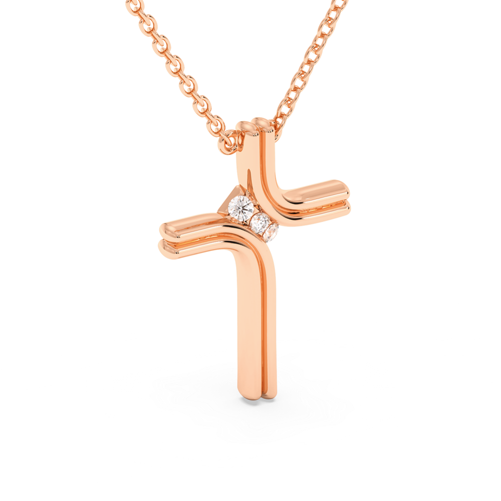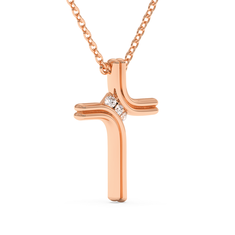 Cross pendant in 14 K gold with 0.08ct diamonds. The weight of the cross is approximately 2.20 grams.