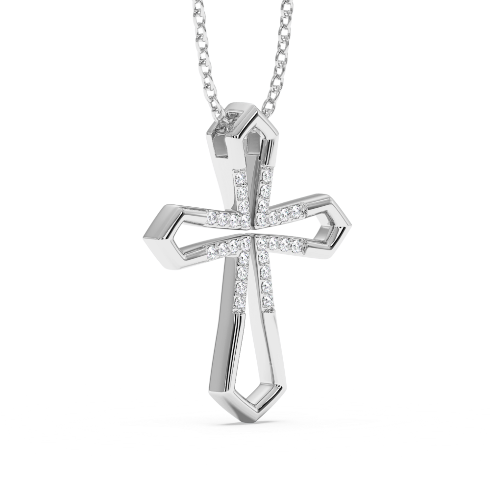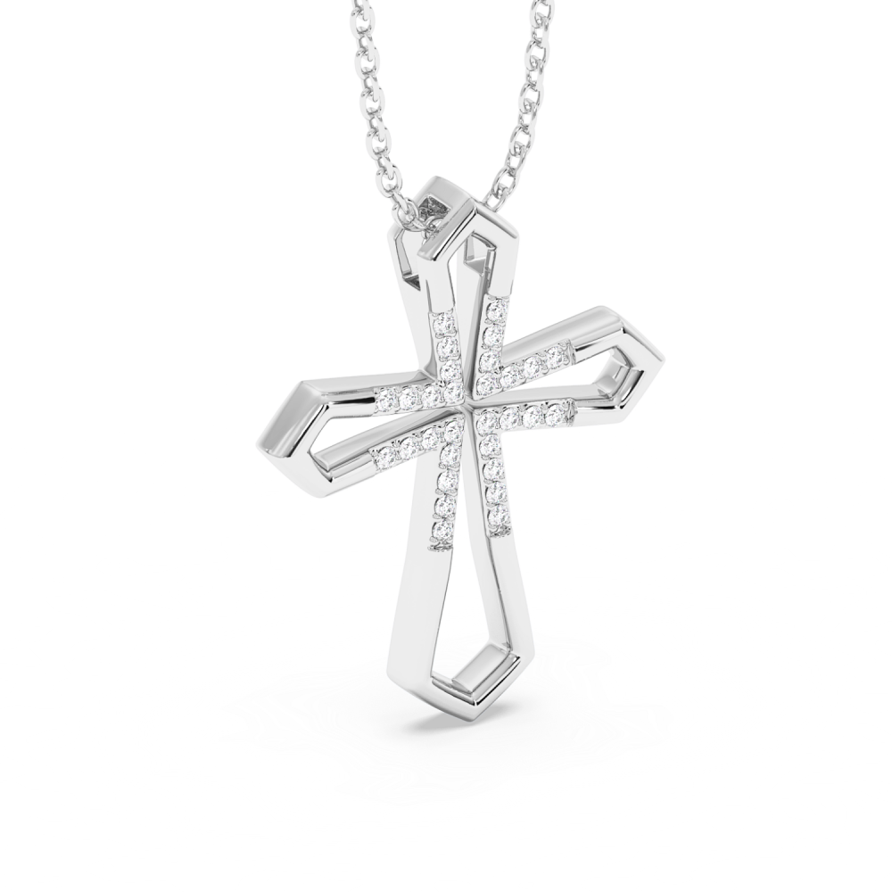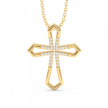 Cross pendant in 14 K gold with 0.09ct diamonds. The weight of the cross is approximately 3.90 grams. Go to "SPECIFICATIONS" for more details about this product.