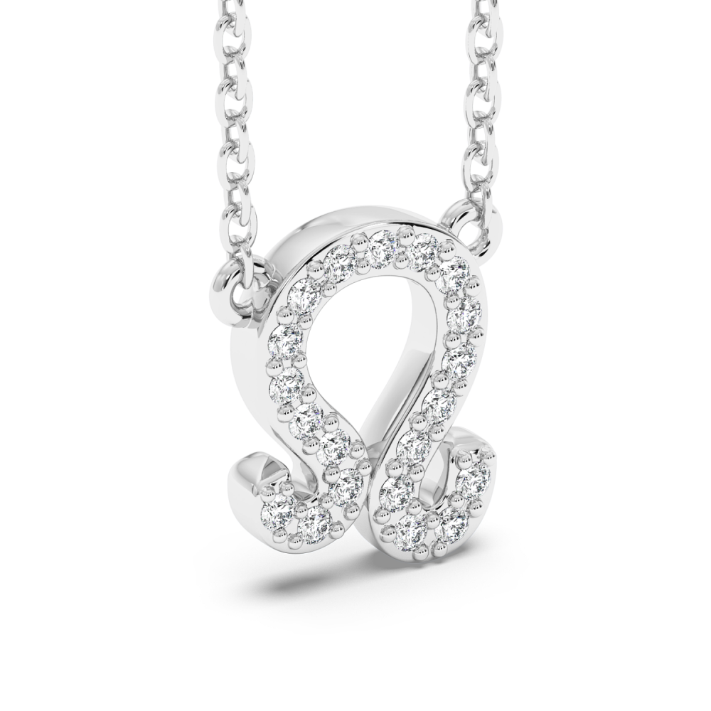 14 K white gold pendant, Leo sign, with 0.10 ct diamonds. The weight of the necklace is 2.07 grams. See " SPECIFICATIONS " for more details about this product. For a correct evaluation of the diamonds, see the chart below