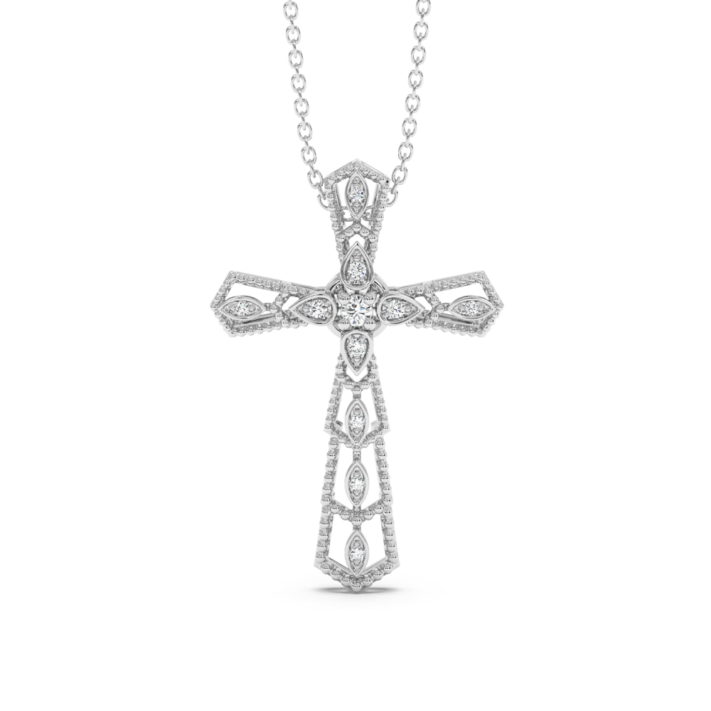 14 K gold cross pendant with 0.11ct diamonds. The weight of the cross is approximately 4 grams. Go to "SPECIFICATIONS" for more details about this product.