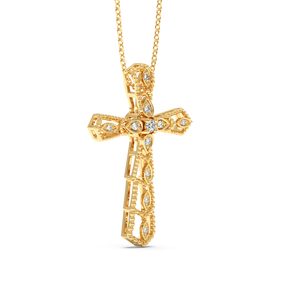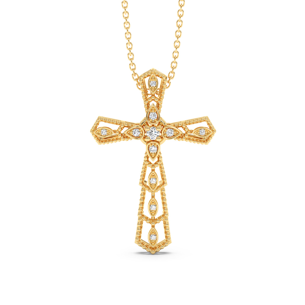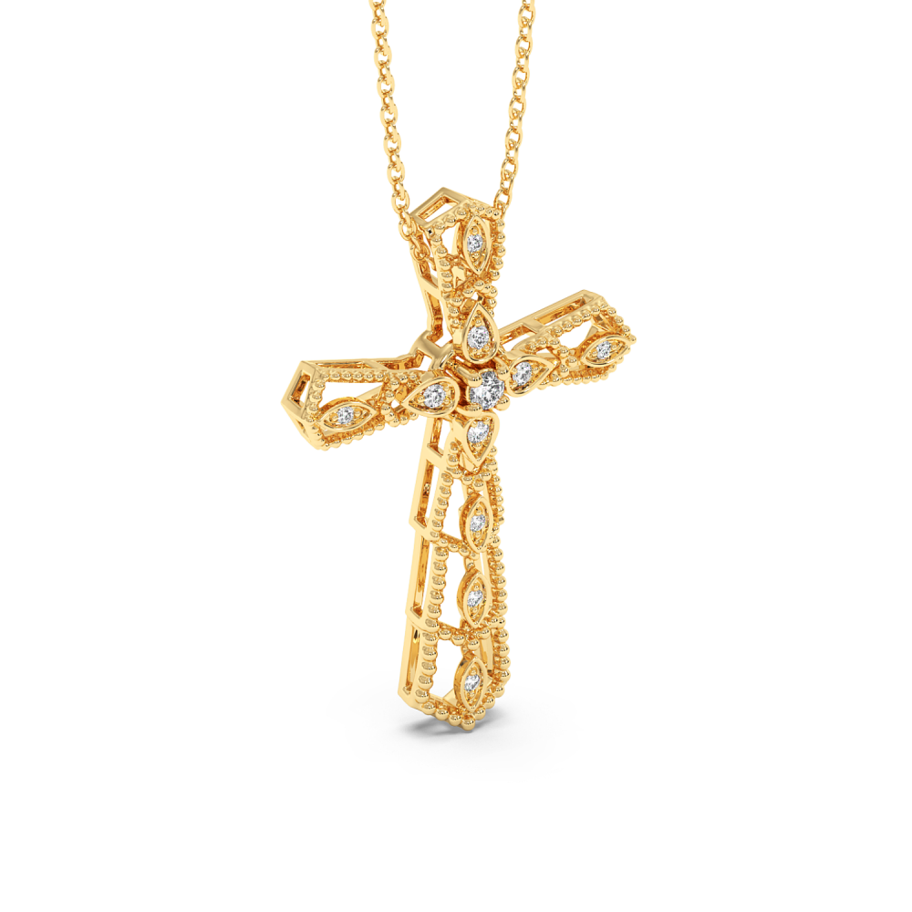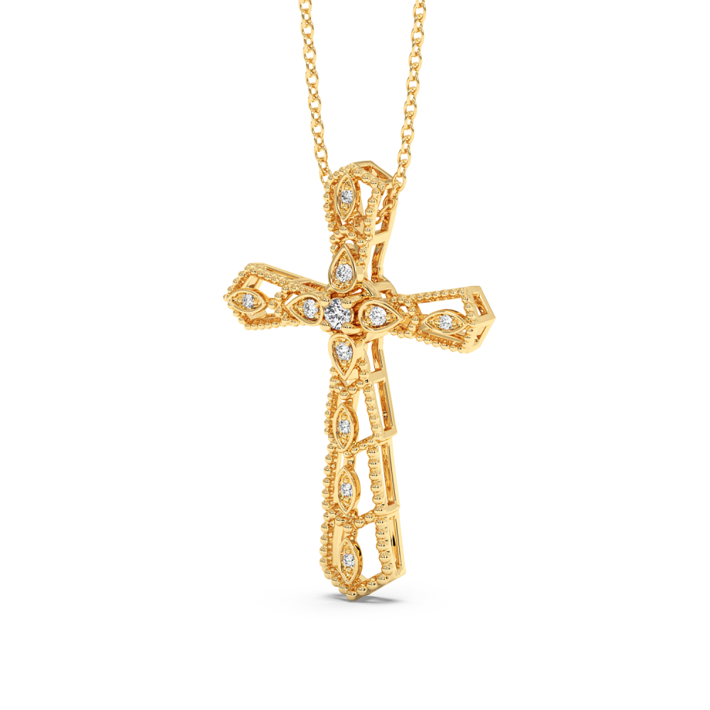 14 K gold cross pendant with 0.11ct diamonds. The weight of the cross is approximately 4 grams. Go to "SPECIFICATIONS" for more details about this product.