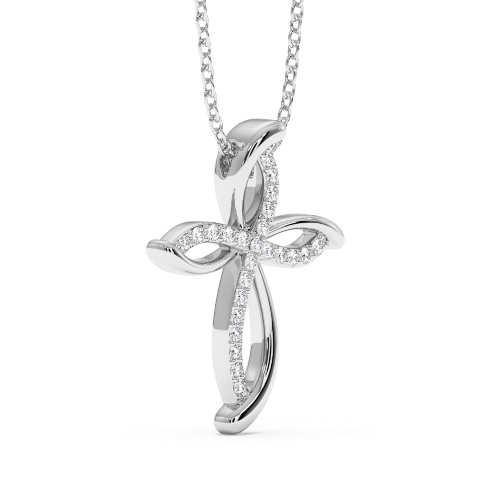 Cross pendant in 14 K gold with 0.12ct diamonds. The weight of the cross is approximately 5.50 grams.