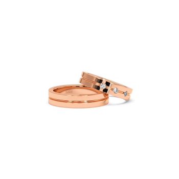 14K gold wedding rings with 0.12ct white diamonds. Approximate weight is 10.00gr/set. The width of the rings is 5mm.