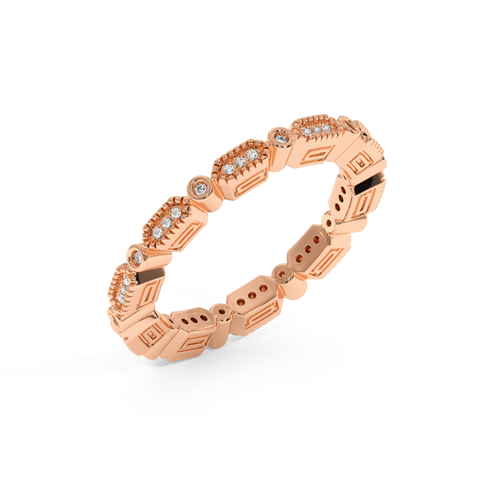 Eternity ring/ring in 14 K gold with 0.14ct diamonds. Weight is approximately 3.80 grams. It can also be made to order in 18K gold. We can modify the design according to your budget. We can choose the characteristics of the diamonds (cut, color, clarity, carat) to create the perfect diamond...