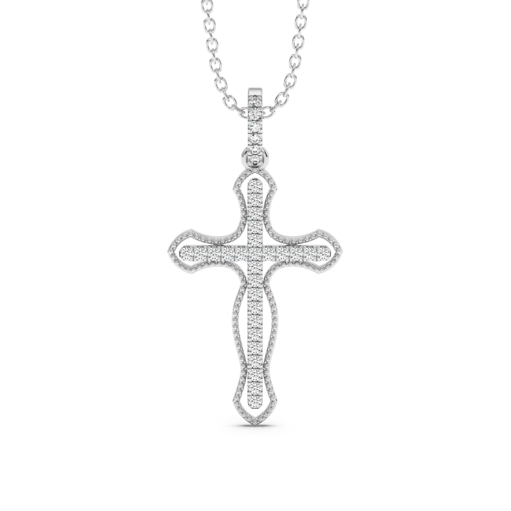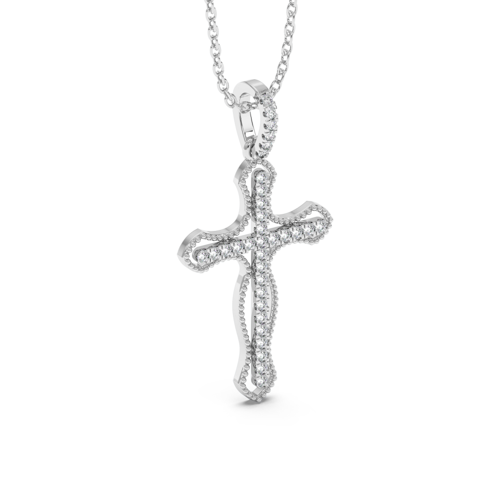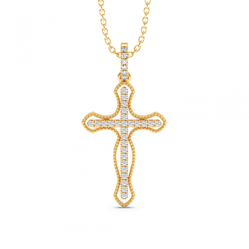 14K gold cross pendant with 0.15ct diamonds. Weight is approximately 1 gram. The pendant can also be made to order in 18K yellow or rose gold. We can modify the design according to your budget. We can choose the characteristics of the diamonds (cut, color, clarity, carat) to create the...