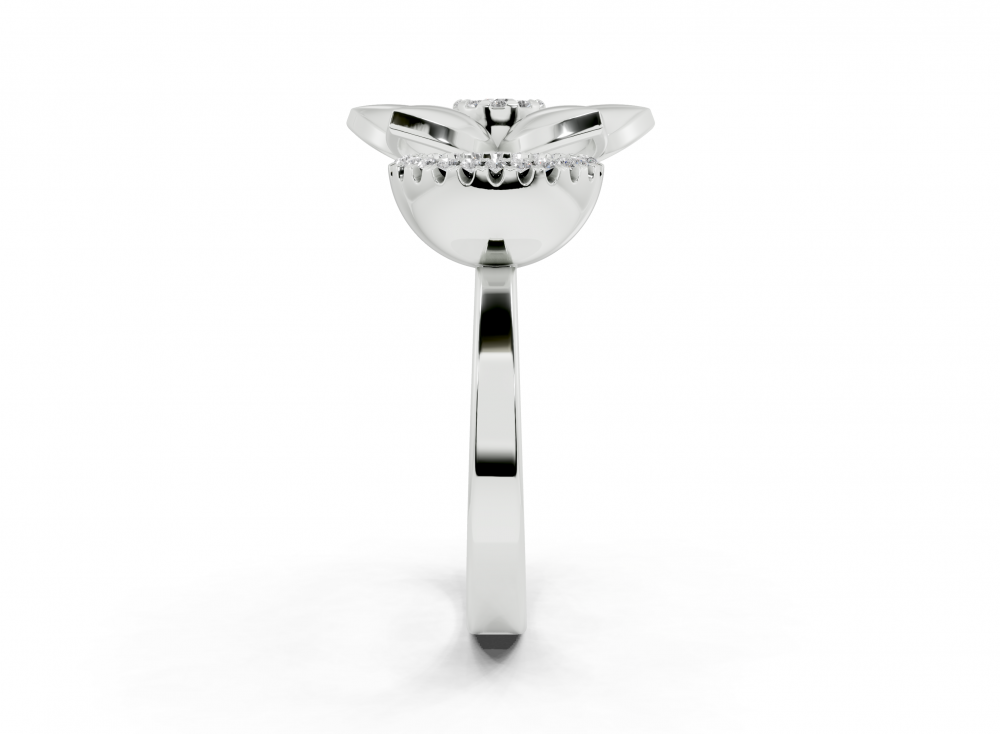 14K white gold ring with 0.15ct round diamonds. The weight of the ring is about 4 grams. The ring can also be made to order in 18K gold. We can modify the design according to your budget.