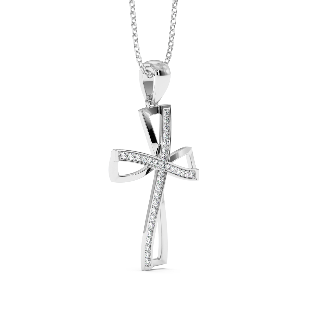 14 K white gold cross pendant with 0.16ct diamonds. The weight of the cross is approximately 3.40 grams.