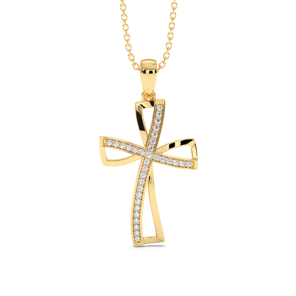 14 K white gold cross pendant with 0.16ct diamonds. The weight of the cross is approximately 3.40 grams. Go to "SPECIFICATIONS" for more details about this product.