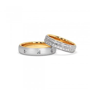 14K gold wedding rings with princess diamonds of 0.17ct and round diamonds of 0.72ct. Approximate weight is 12.50gr/set. Ladies wedding ring width 4.90mm, men wedding ring width 4.90mm. Wedding rings can be made to order in 18k gold. We can modify the design according to your budget. We can...