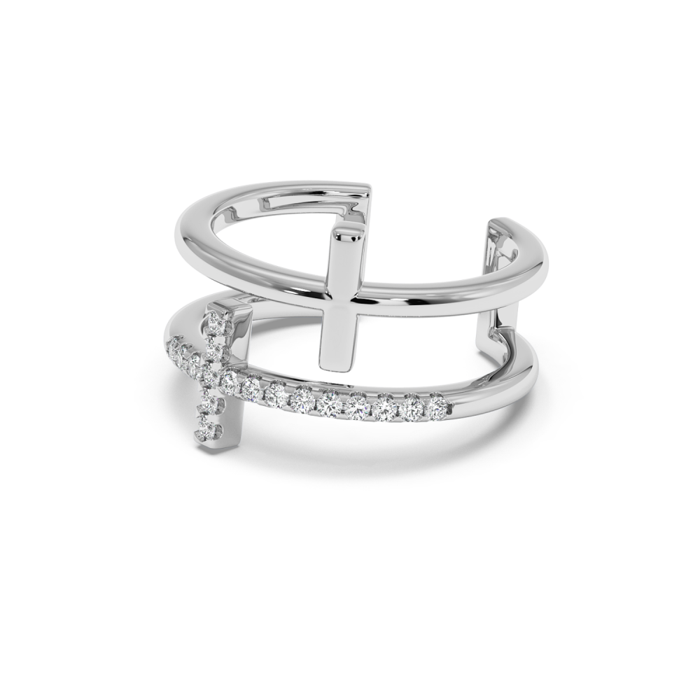 14K white gold ring with 0.17ct round diamonds. Ring weight is approximately 3.20 grams. The ring can also be made to order in 18K gold. We can modify the design according to your budget.