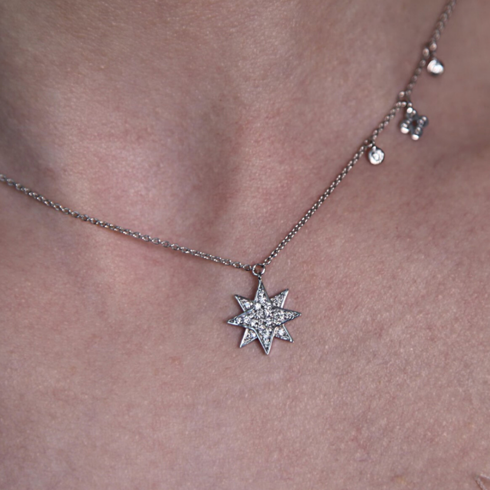 14k white gold pendant, 0.18 carat diamonds. The pendant weighs 2.99 grams. Go to "SPECIFICATIONS" for more details about this product. For a correct diamond valuation, please refer to the chart below: