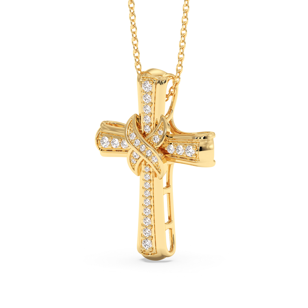 14 K gold cross pendant with 0.20ct diamonds. The weight of the cross is approximately 3.40 grams. Go to "SPECIFICATIONS" for more details about this product.