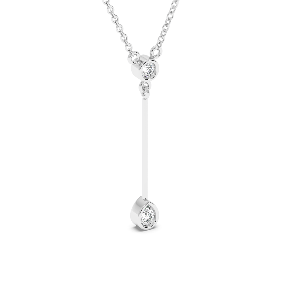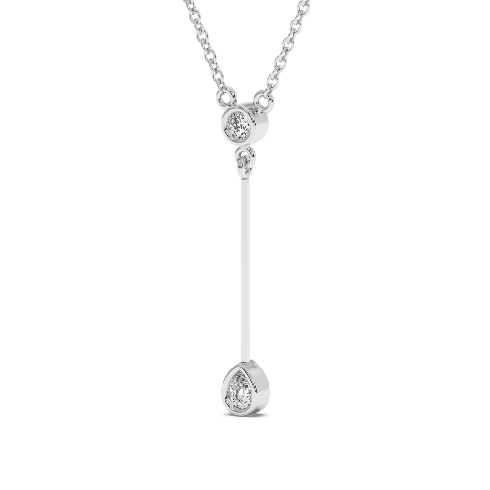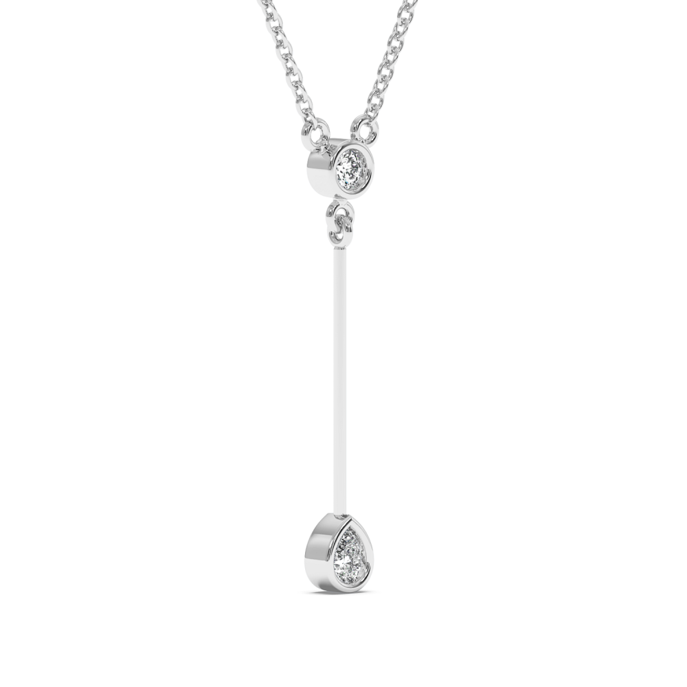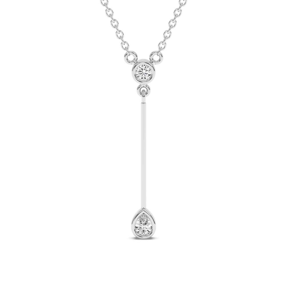 14 K white gold pendant with pear diamonds of 0.13 ct and round diamonds of 0.093 ct. The weight of the necklace is 2.85 grams.