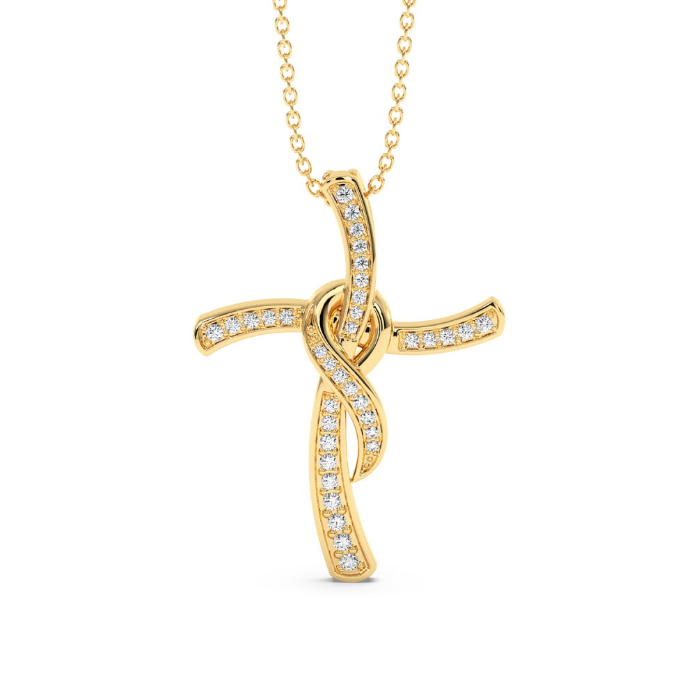 Cross pendant in 14 K gold with 0.22ct diamonds. The weight of the cross is approximately 5.20 grams.
