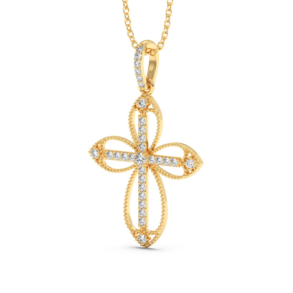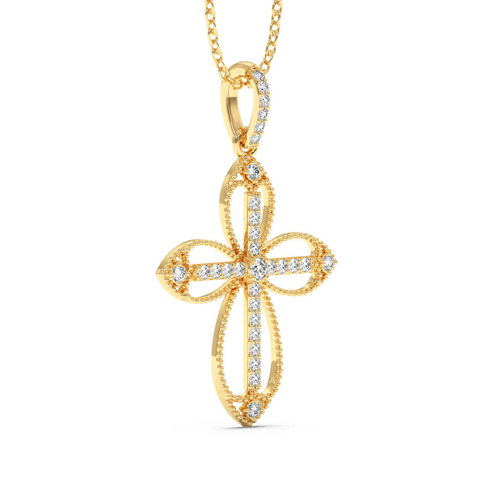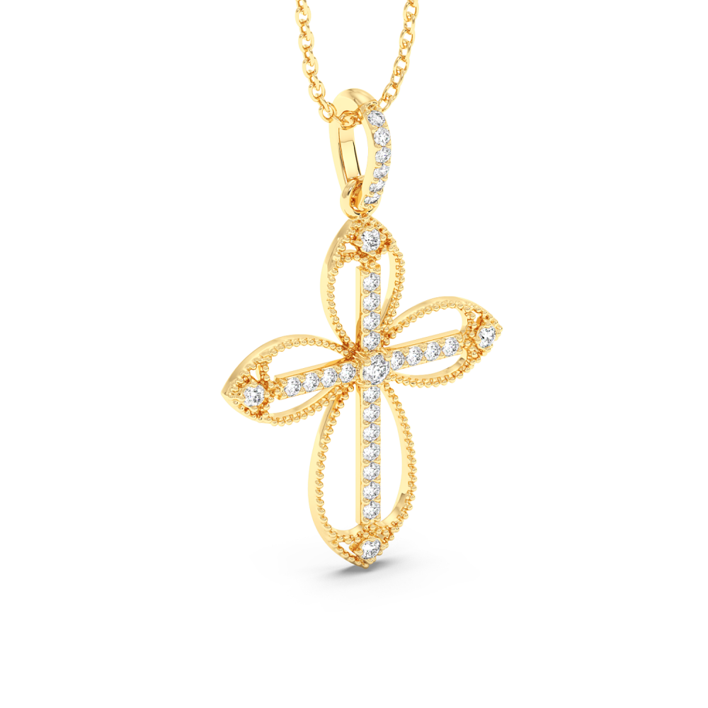 Cross pendant in 14 K gold with 0.22ct diamonds. The weight of the cross is approximately 1.50 grams. Go to "SPECIFICATIONS" for more details about this product.