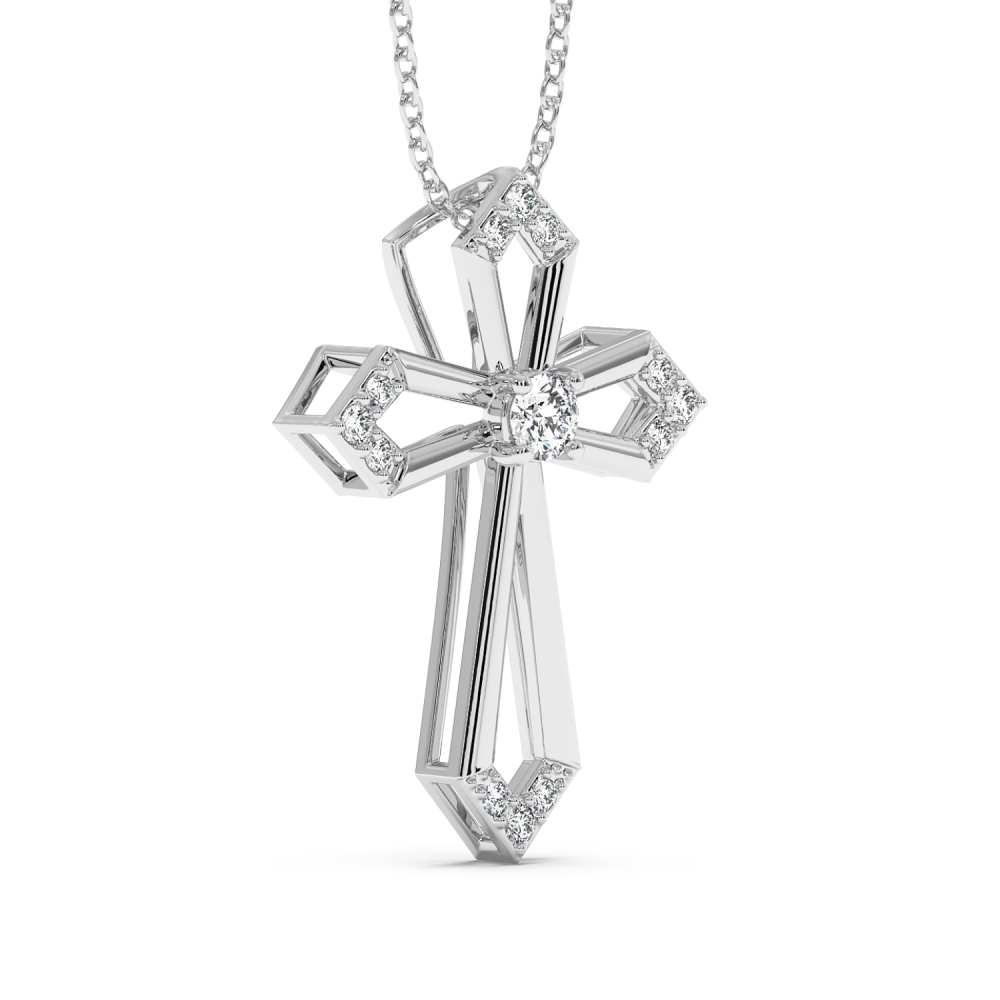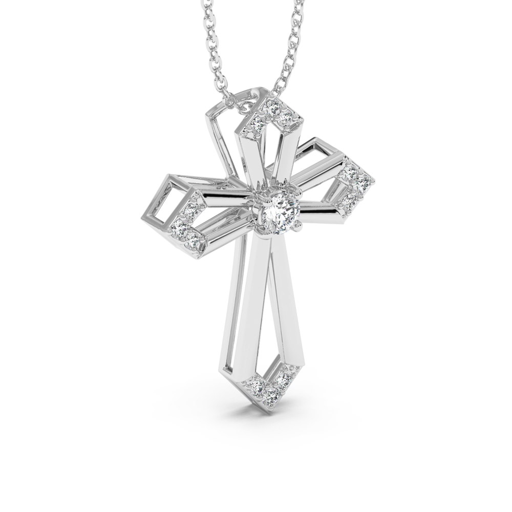 Cross pendant in 14K gold with 0.24ct diamonds. Weight is approximately 2.30 grams. The pendant can also be made to order in 18K, yellow or rose gold. We can modify the design according to your budget. We can choose the characteristics of the diamonds (cut, color, clarity, carat) to create...