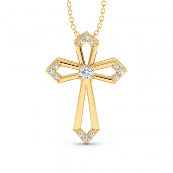 Cross pendant in 14K gold with 0.24ct diamonds. Weight is approximately 2.30 grams.