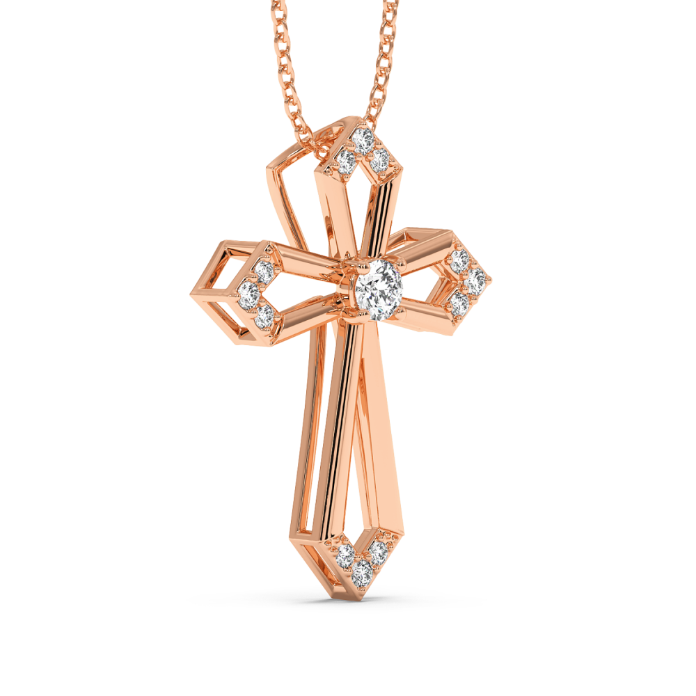 Cross pendant in 14K gold with 0.24ct diamonds. Weight is approximately 2.30 grams. The pendant can also be made to order in 18K, yellow or rose gold. We can modify the design according to your budget. We can choose the characteristics of the diamonds (cut, color, clarity, carat) to create...