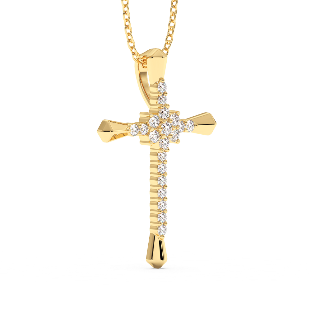 14 K gold cross pendant with 0.25ct diamonds. The weight of the cross is approximately 1.20 grams. Go to "SPECIFICATIONS" for more details about this product.