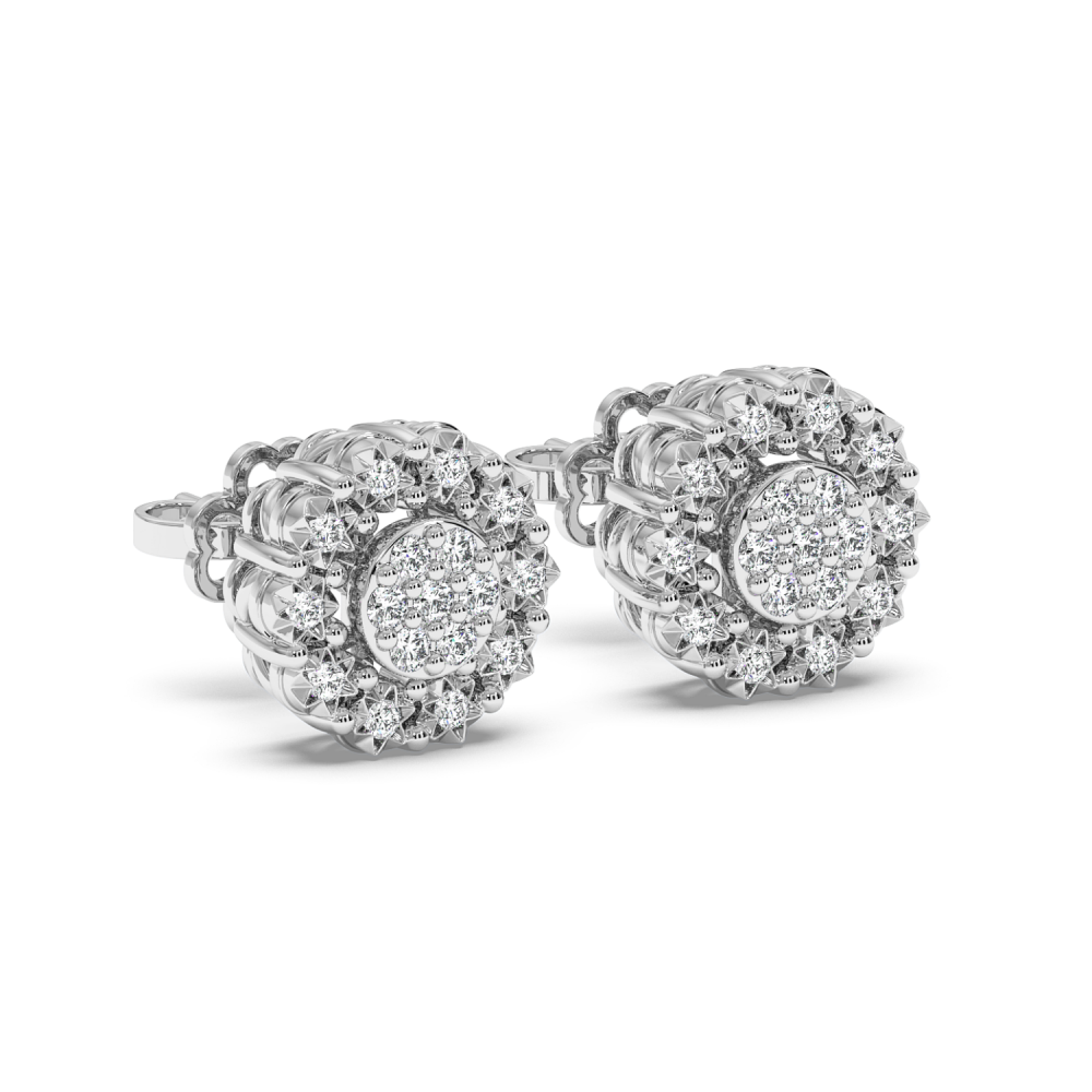 14 K white gold earrings with 0.27ct diamonds. The earrings weigh approximately 4.20 grams. The diameter of the earrings is approximately 9.7 mm.