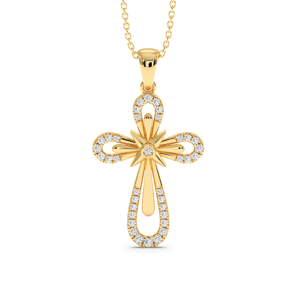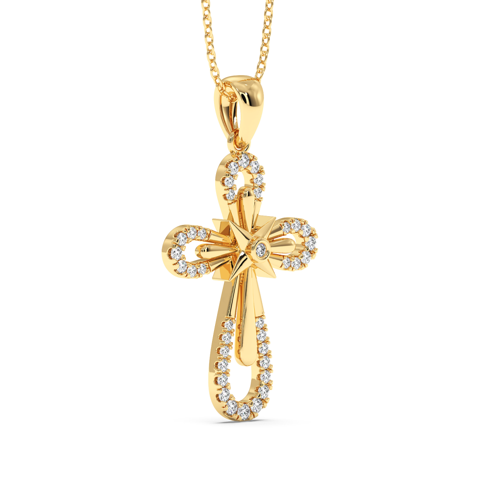 14 K gold cross pendant with 0.29ct diamonds. The weight of the cross is approximately 3.30 grams. Go to "SPECIFICATIONS" for more details about this product.