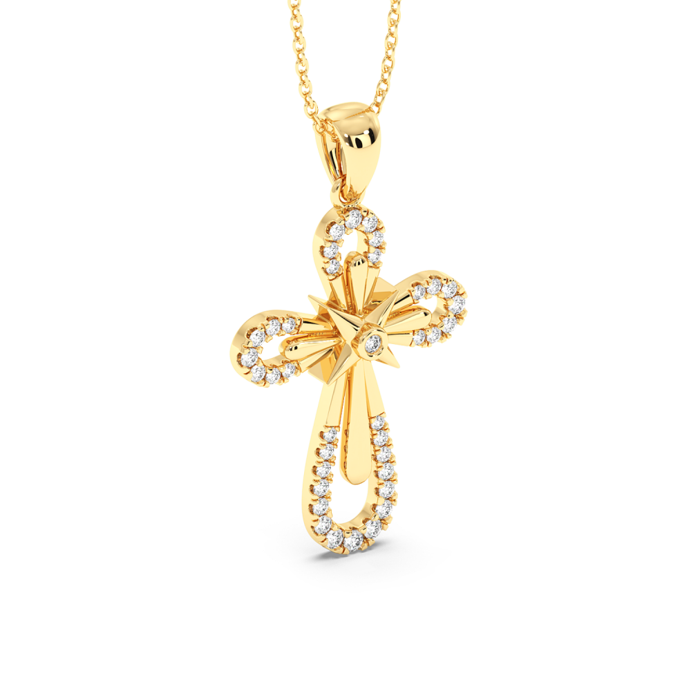 14 K gold cross pendant with 0.29ct diamonds. The weight of the cross is approximately 3.30 grams.