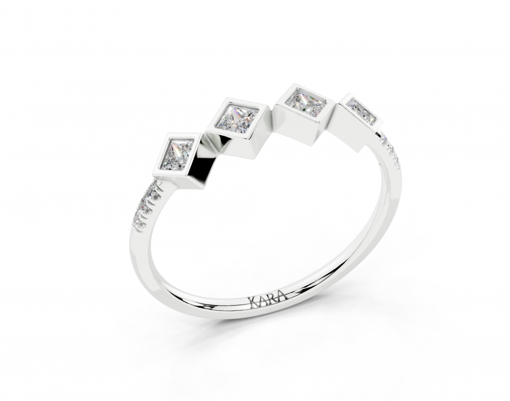 14K white gold ring with 0.29ct Princess Cut diamonds and 0.03ct round diamonds. Ring weight is 1.62 grams. We can modify the design according to your budget. We can choose the characteristics of the diamonds (cut, color, clarity, carat) to create the perfect diamond ring. Go to "FEATURES...