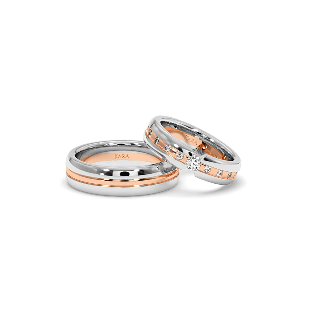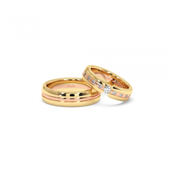 14K gold wedding rings with 0.33ct white diamonds. Approximate weight is 12.00gr/set. The width is 6mm. Wedding rings can be made to order in 18k gold. We can modify the design according to your budget. We can choose the diamond characteristics (cut, color, clarity, carat) for the wedding...