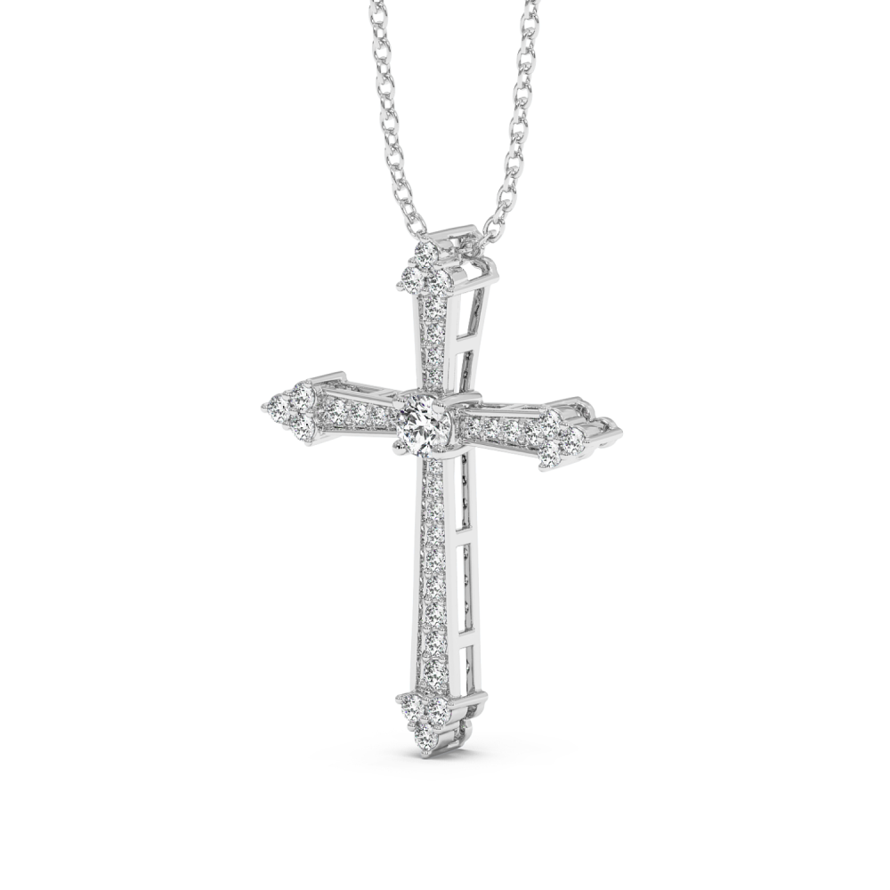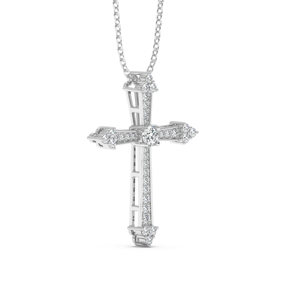 14 K white gold cross pendant with 0.35ct diamonds. The weight of the cross is approximately 3 grams. Go to "SPECIFICATIONS" for more details about this product.