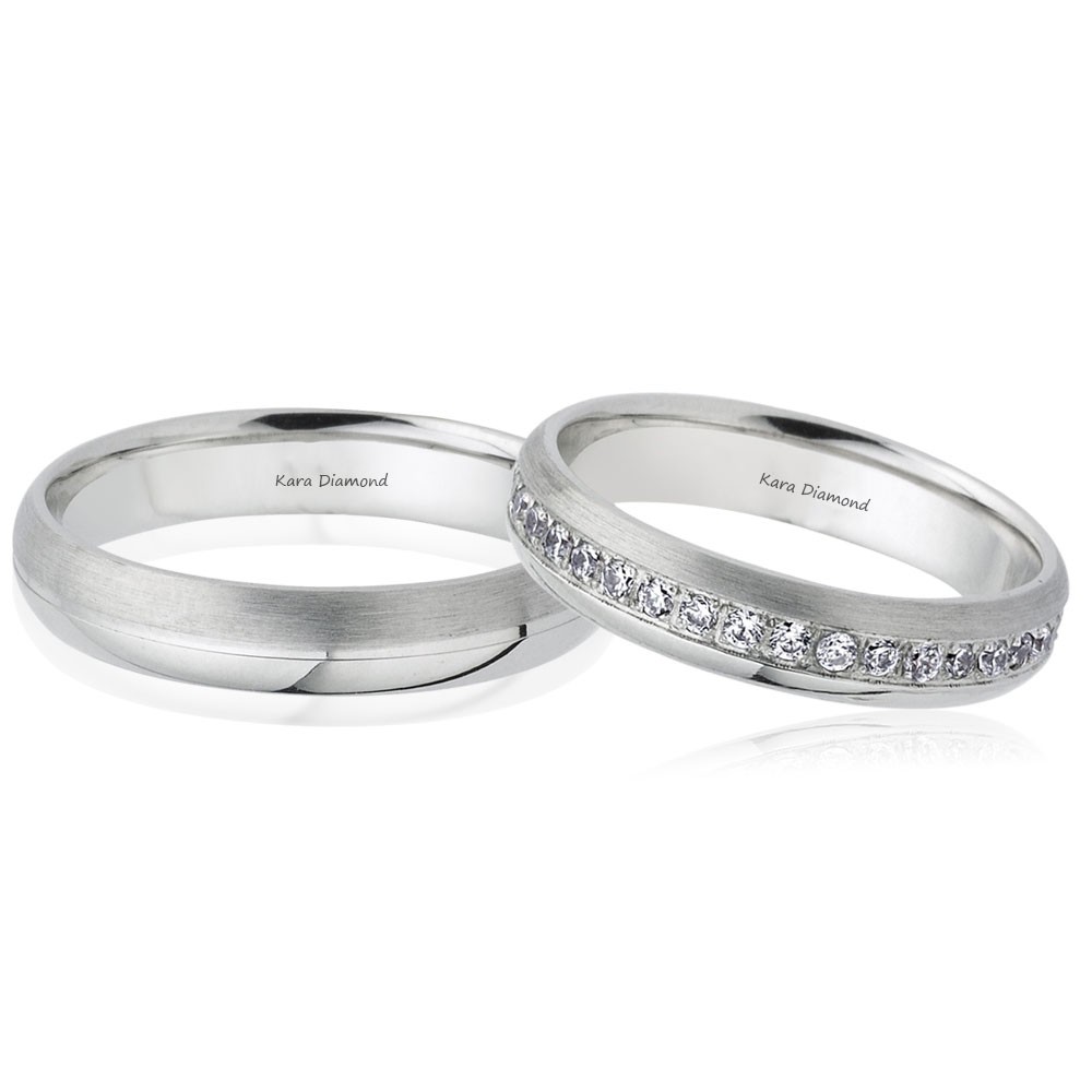 14k white gold wedding rings with 0.35ct white diamonds. Approximate weight is 10gr/set. Ring width 5mm. Wedding rings can be made to order in 18k gold. We can modify the design according to your budget. We can choose the diamond characteristics (cut, color, clarity, carat) for the wedding...