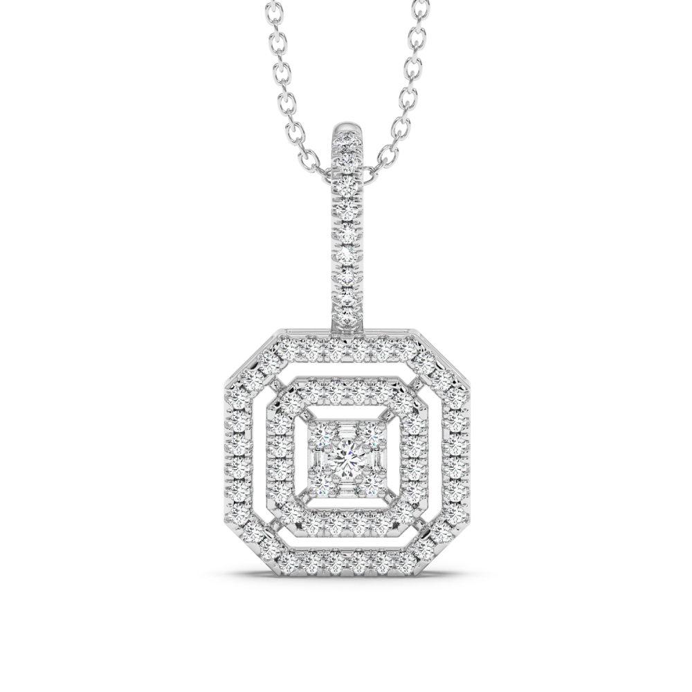 14K white gold pendant with 0.39ct diamonds. The pendant weighs approximately 4.30 grams. The length of the pendant is 2.50 cm. Go to "SPECIFICATIONS" for more details about this product.