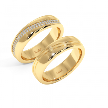 14k gold wedding rings with 0.39ct diamonds. Men's wedding ring width 6mm, ladies wedding ring width 5mm. Approximate weight is 12.80 gr/set. Wedding rings can be made to order in 18k gold. We can modify the design according to your budget. We can choose the diamond characteristics (cut,...