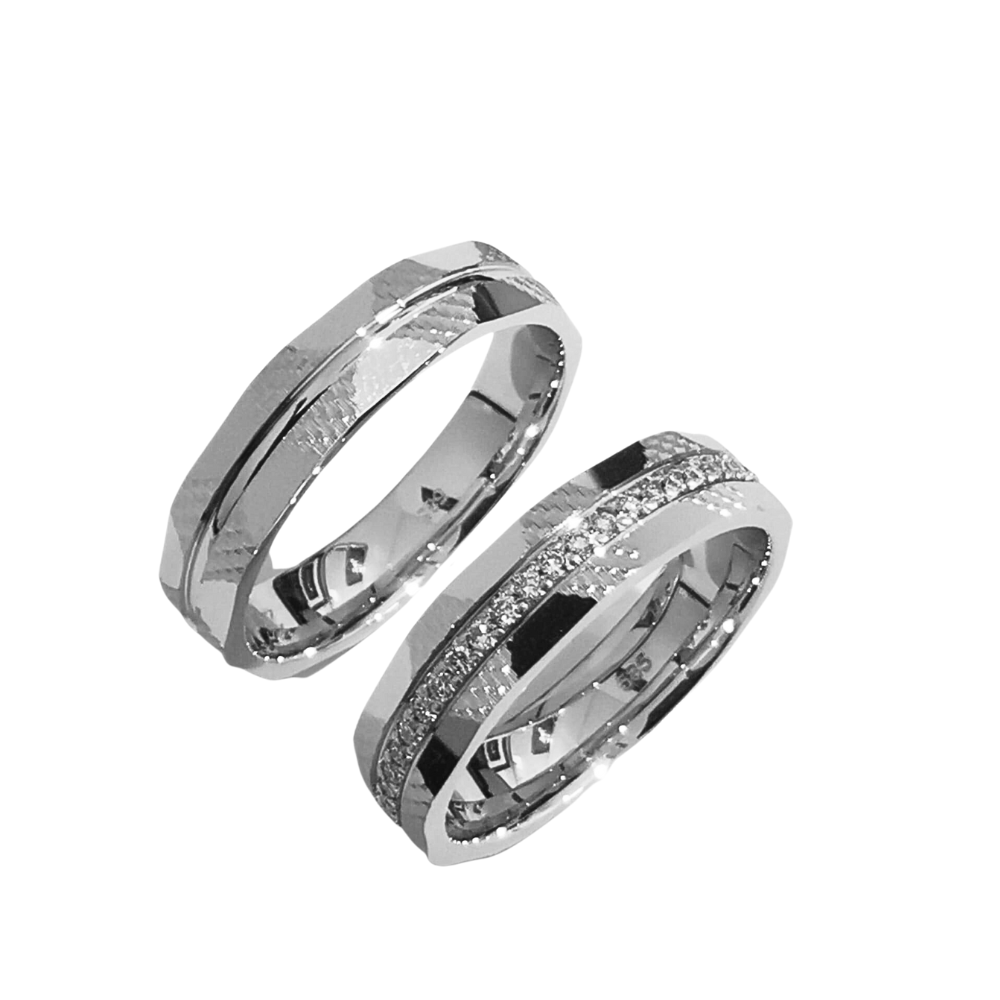 14k white gold wedding rings with 0.40 ct diamonds. The approximate weight is about 12 gr/set. Wedding rings can also be made to order in 18k gold. We can modify the design according to your budget. We can choose the diamond characteristics (cut, color, clarity, carat) for the wedding rings...