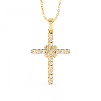 14 K gold cross pendant with 0.40ct diamonds. The weight of the cross is approximately 1.30 grams. Go to "SPECIFICATIONS" for more details about this product.