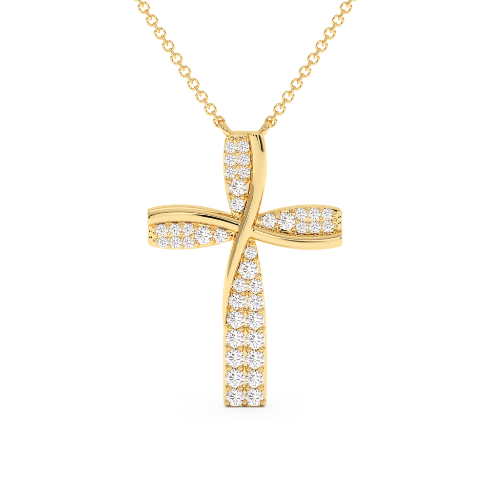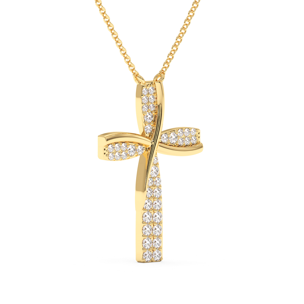 14 K gold cross pendant with 0.40ct diamonds. The weight of the cross is approximately 2.20 grams. Go to "SPECIFICATIONS" for more details about this product.