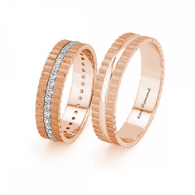 14k white gold wedding rings with 0.40ct white diamonds. Approximate weight is 12.00gr/set. Ring width 5mm. The wedding rings can be made to order in 18K gold, also the model can be made in any of the 3 colors shown. We can modify the design according to your budget. We can choose the diamond...