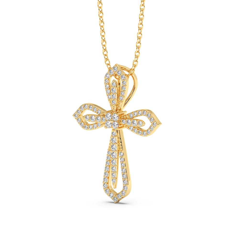 Cross pendant in 14 K gold with 0.42ct diamonds. The weight of the cross is approximately 3.80 grams. Go to "SPECIFICATIONS" for more details about this product.