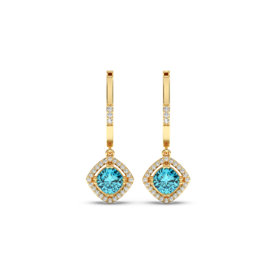 14K white gold earrings with 0.43 ct diamonds and 1.72 ct blue topaz. The weight of the earrings is approx 5.00 grams. The earrings can be made in white, yellow or rose gold.