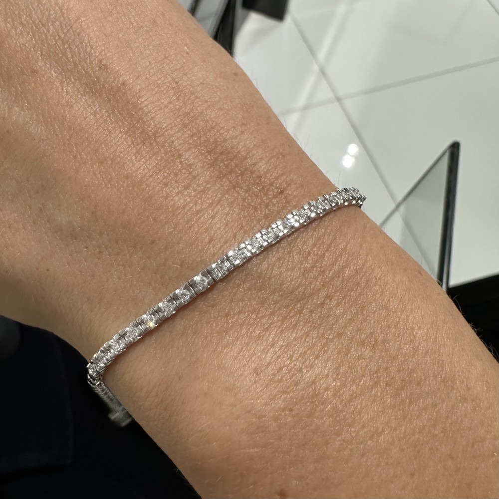 14 k white gold bracelet with 0.43 ct diamonds. The weight of the bracelet is 5.60 grams.