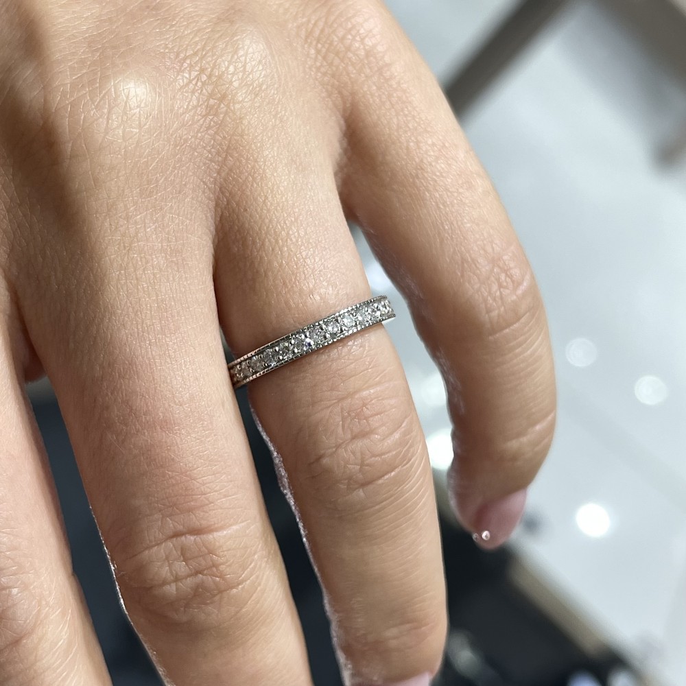 It can also be made to order in 14K gold. We can modify the design according to your budget. We can choose the characteristics of the diamonds (cut, color, clarity, carat) to create the perfect diamond wedding ring.