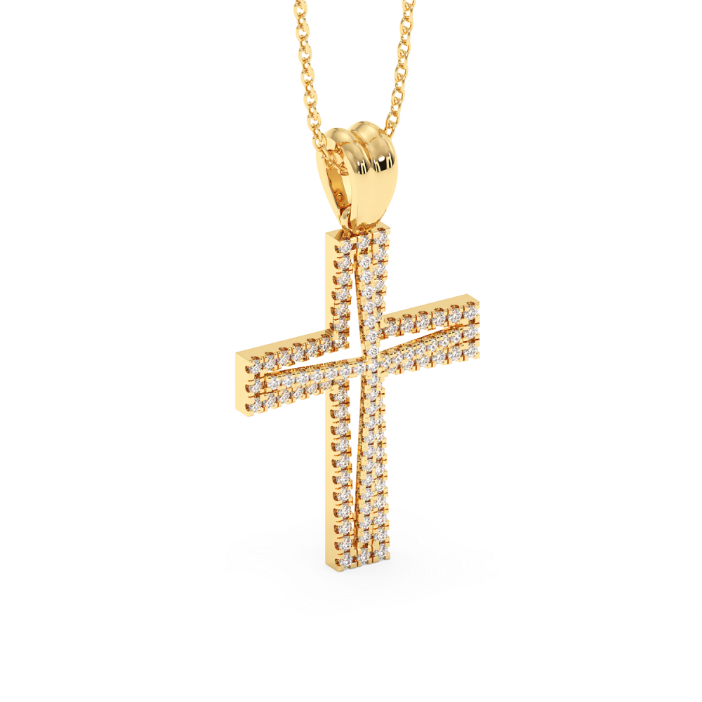 14 K gold cross pendant with 0.46ct diamonds. The weight of the cross is approximately 2.30 grams. Go to "SPECIFICATIONS" for more details about this product.
